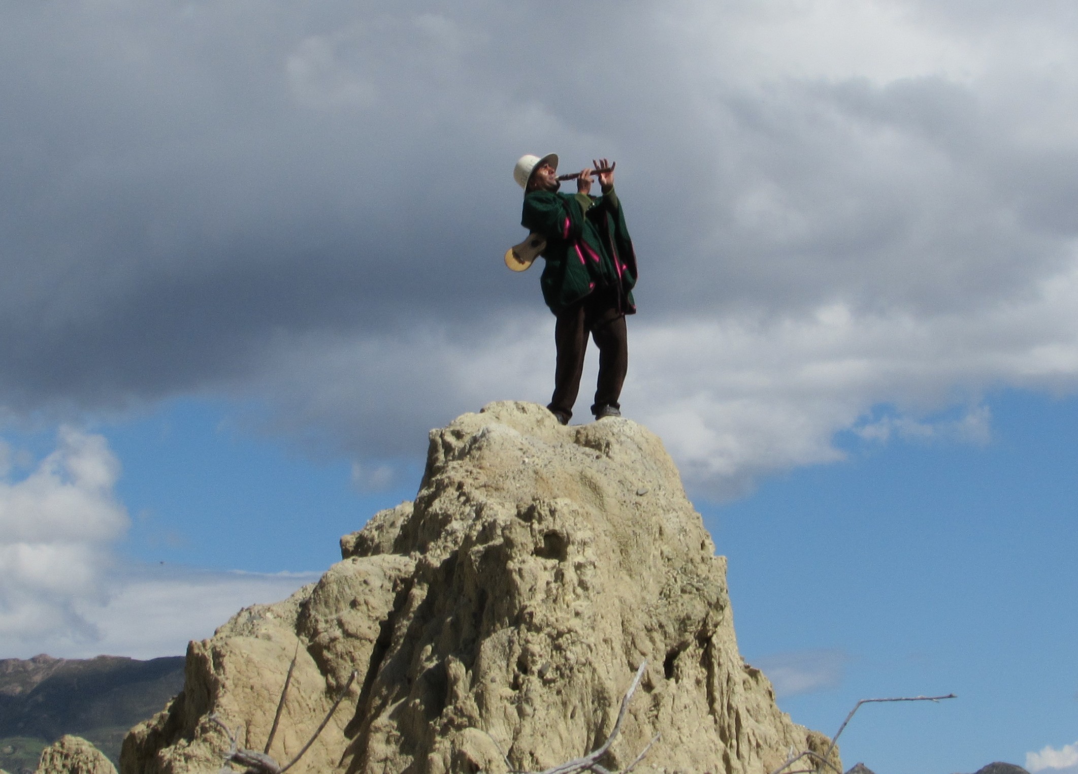 An indigenous Bolivian plays a traditional flute at the Valle de la Luna near La Paz, Bolivia. Photo by Brian Seavitt