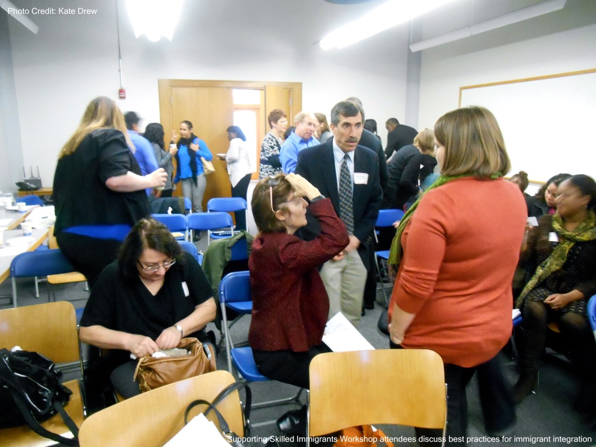 DSCN0631 Published January 6, 2015 at 5152 × 3864 Supporting Skilled Immigrants Workshop attendees discuss best practices for immigrant integration.