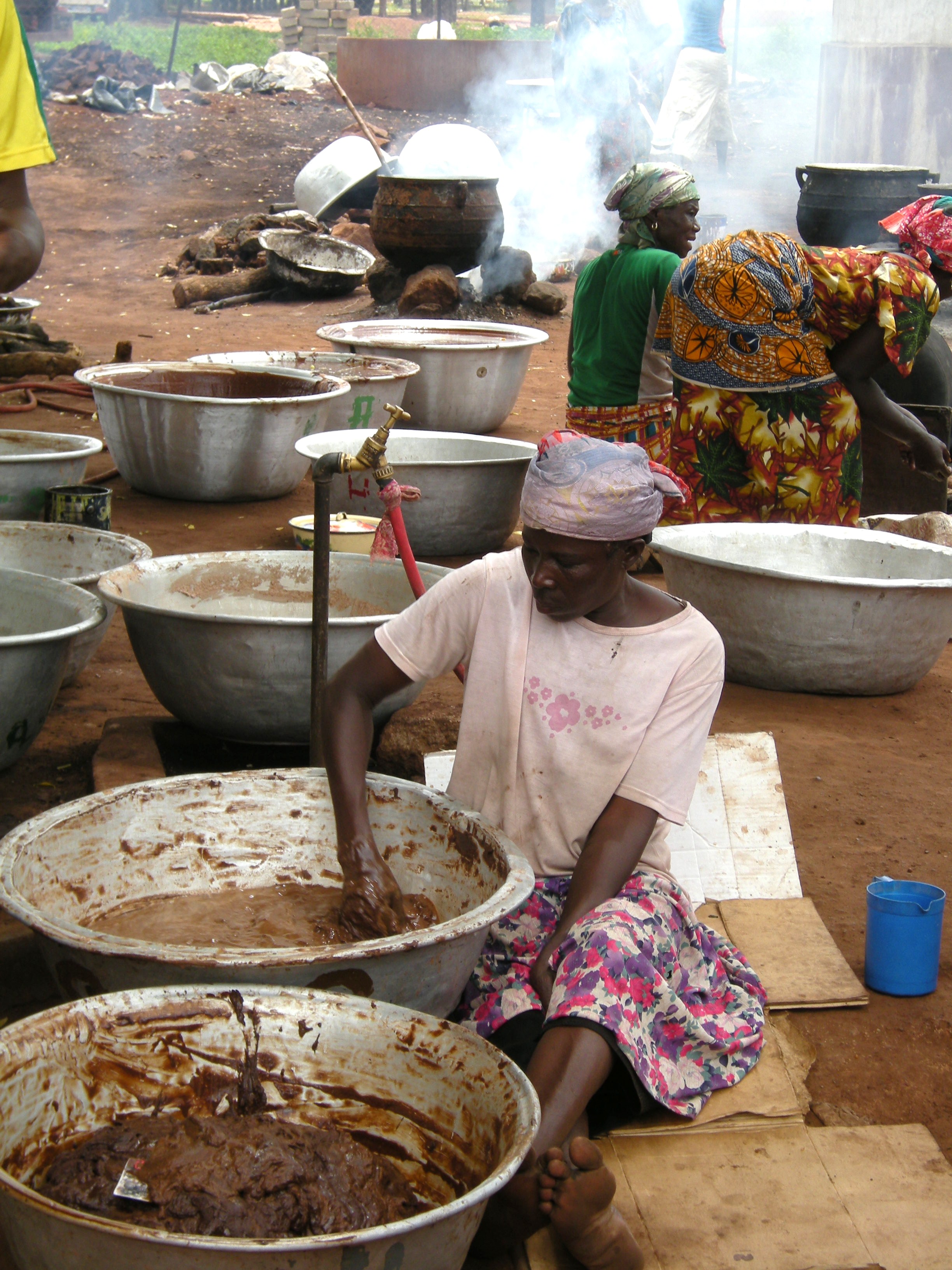 DSCN3248 Published November 14, 2013 at 2448 × 3264 Members of a women’s cooperative in Tamale work in groups on the long process of extracting shea butter, an ingredient used in cosmetics and food production.